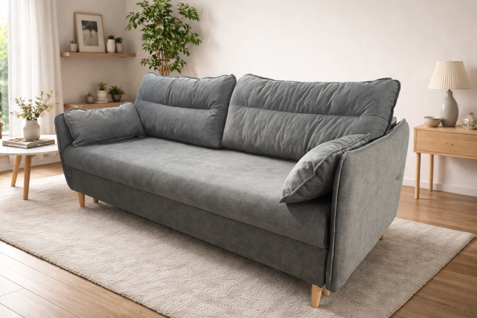 Szukasz kanapy, która świetnie wygląda w salonie, a w razie potrzeby zamienia się w pełnowymiarowe łóżko? Ten model łączy nowoczesną, lekką formę z komfortem, który czuć od pierwszego usiadania. Idealna do codziennego wypoczynku i okazjonalnego noclegu dla gości.