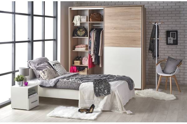 Szafka nocna Lima posiada półkę i szufladę na drobiazgi. Doskonale nadaje się do sypialni lyb pokoju młodzieżowego.