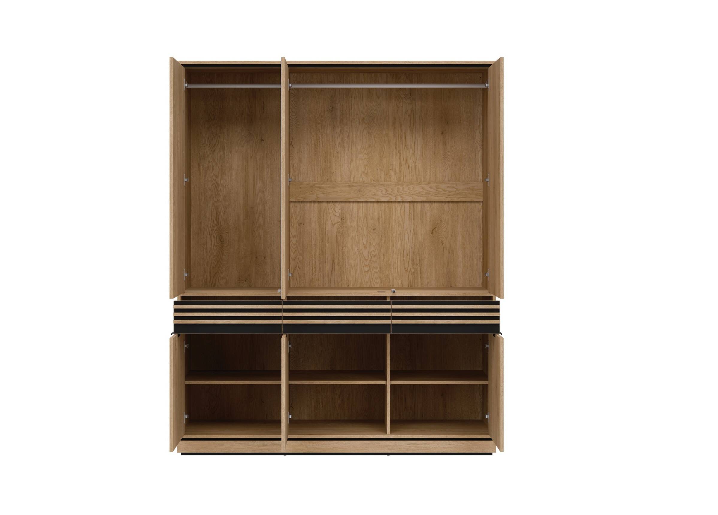 Większa wersja szafy z kolekcji FERRO oferująca mnóstwo miejsca na przechowywanie odzieży i dodatków. Posiada pojemne półki oraz szeroki drążek na wieszaki, co sprawia, że jest idealnym rozwiązaniem zarówno do sypialni, jak i garderoby. Nowoczesny, minimalistyczny design sprawia, że pasuje do różnych aranżacji wnętrz. Wykonana z wysokiej jakości materiałów, jest odporna na codzienne użytkowanie i zapewnia maksymalną funkcjonalność. Dodatkowym atutem tej szafy jest eleganckie, duże lustro na froncie, które nie tylko optycznie powiększa przestrzeń, ale również dodaje wnętrzu nowoczesnego charakteru i praktyczności.